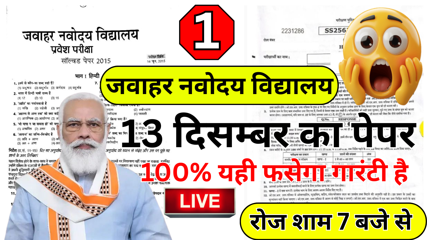 जवाहर नवोदय विद्यालय परीक्षा 2025 के महत्वपूर्ण प्रश्न
