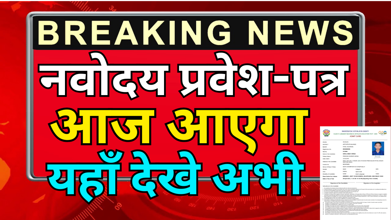 Navodaya Class 6 Exam 13 December 2025 के लिए Admit Card Update